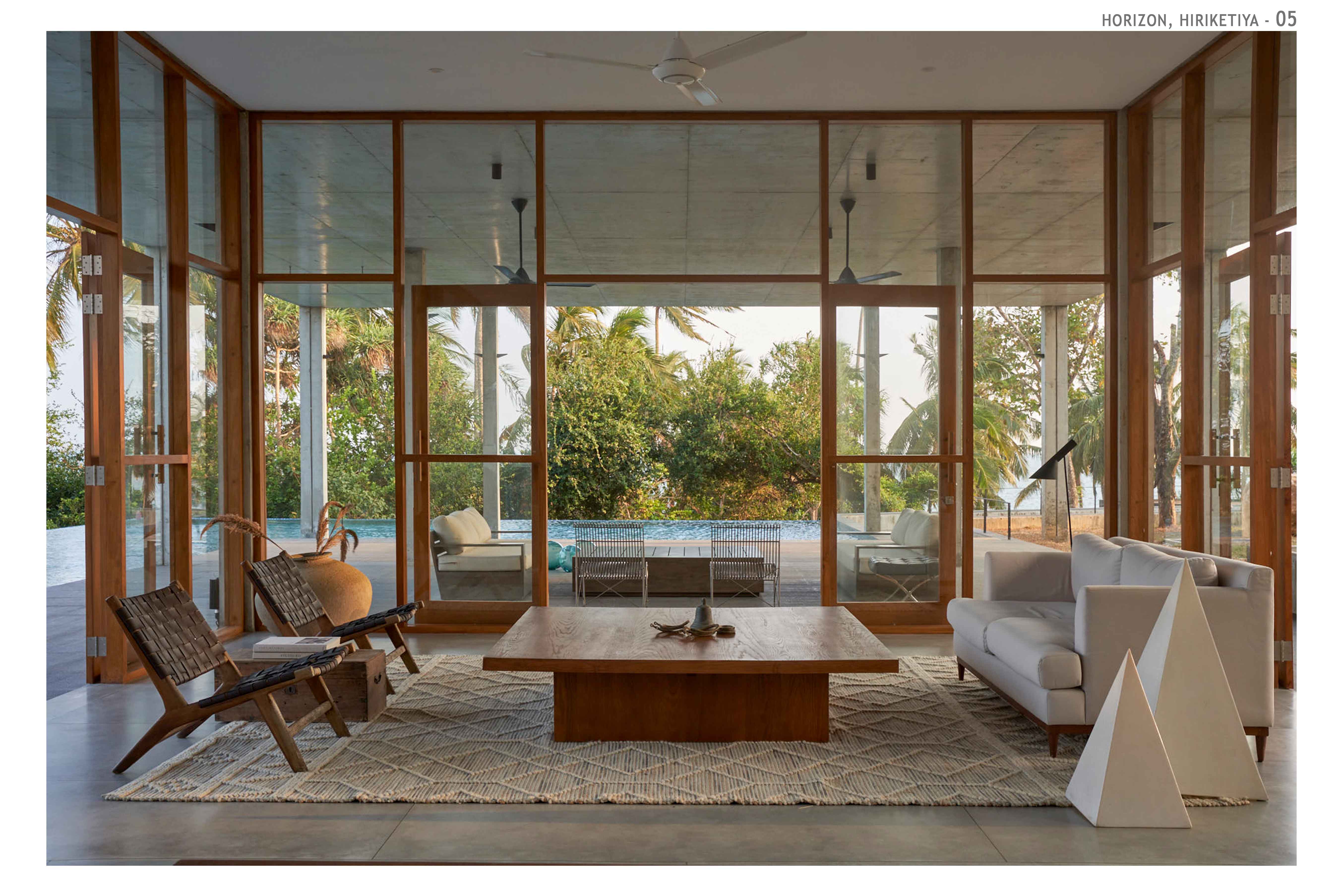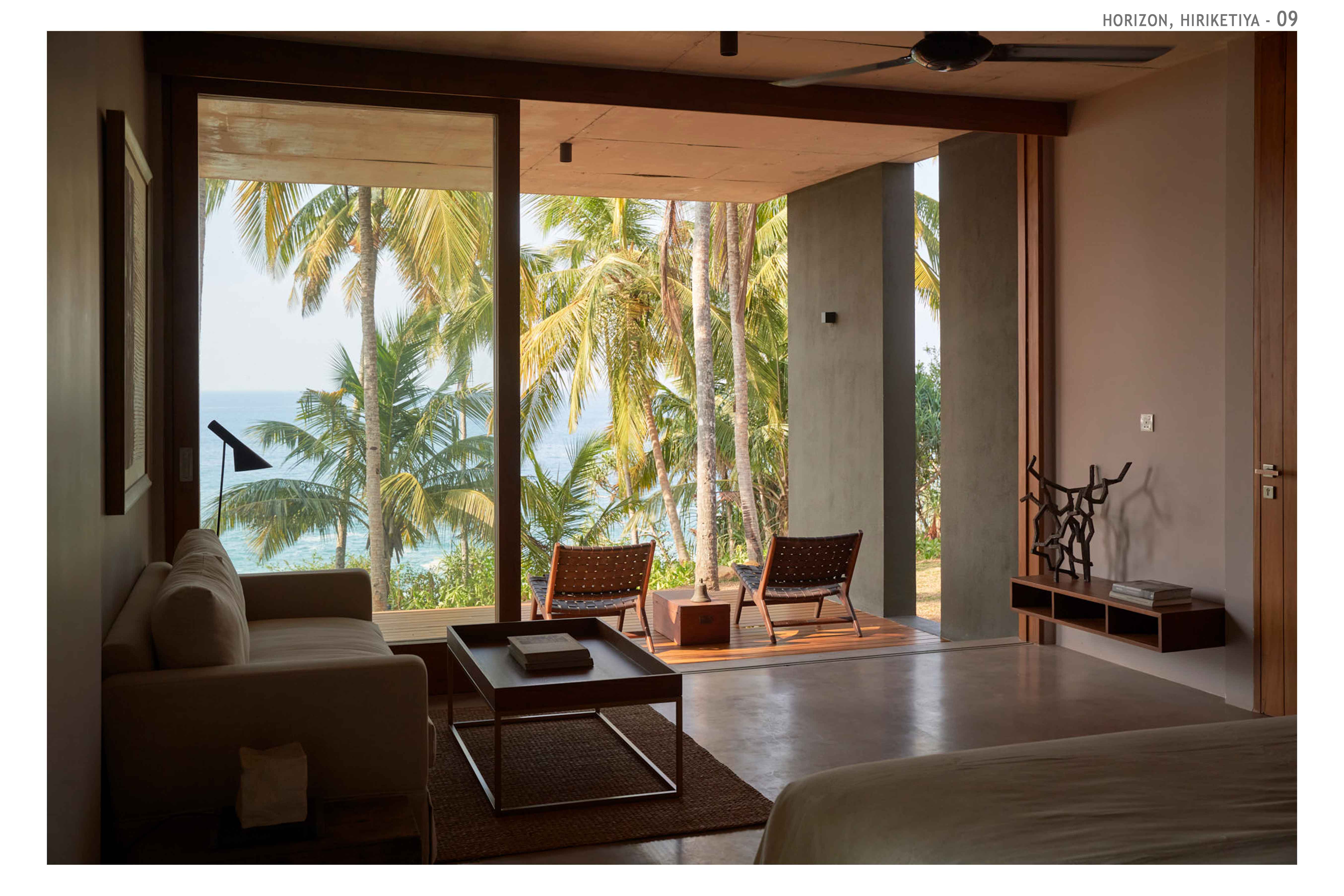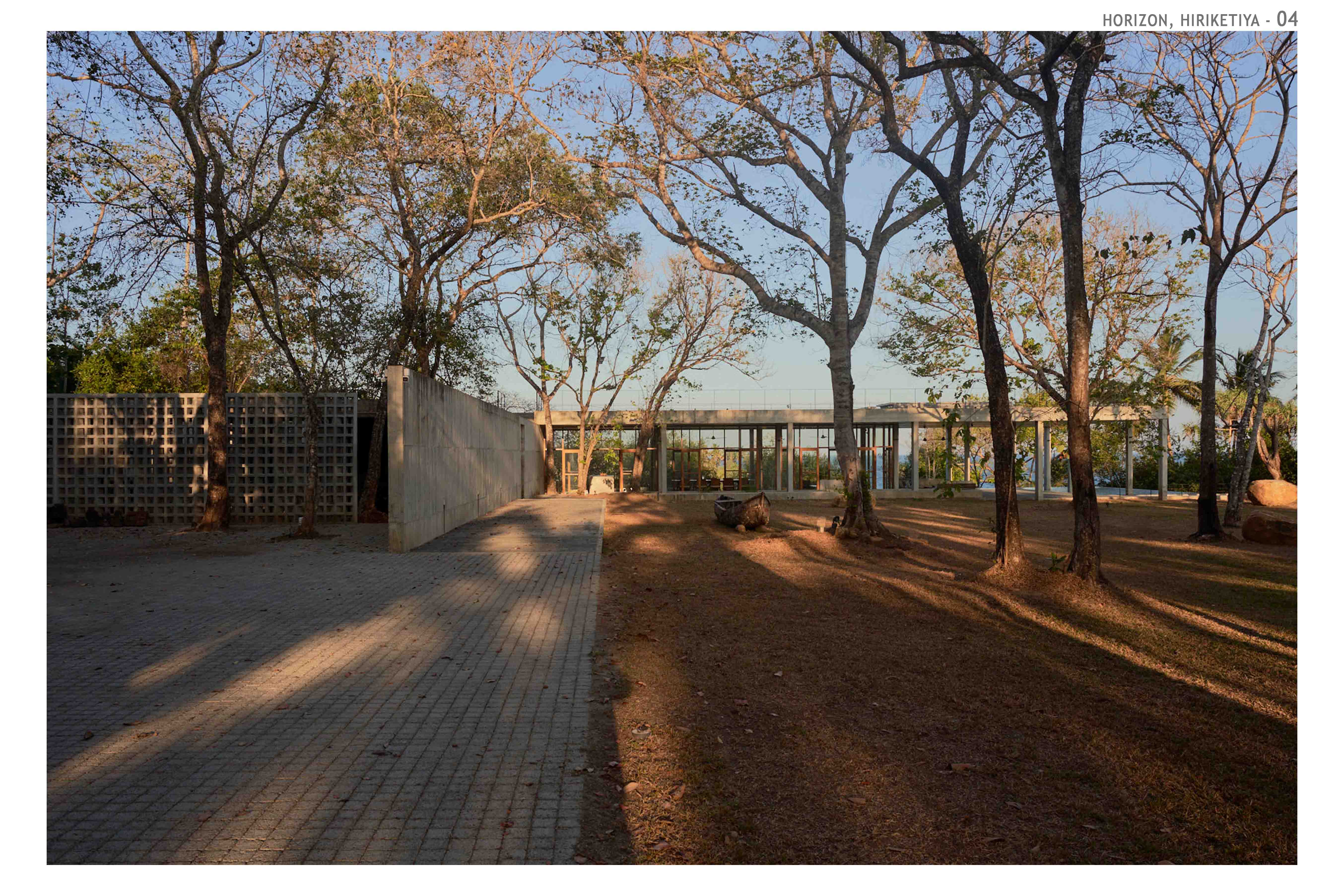 Hospitality Architecture - Excellence AwardThe Horizon is an exclusive family retreat located on the cliffs overlooking the picturesque Hiriketiya Bay in Sri Lanka, renowned for its stunning surf spots and emerald-blue waters. Designed for a prominent Sri Lankan business family, the house functions as a getaway for three generations, accommodating large family gatherings, vacations, and celebrations. At the heart of the home is the main pavilion, which houses the living, dining, and pantry areas. These spaces open to an infinity pool that seemingly hovers above the bay, offering dramatic views of sunrises, sunsets, and local wildlife. The pavilion’s green roof, complete with sunk seating, provides a tranquil spot to appreciate both the lush greenery and the expansive bay. A narrow, sunken corridor leads to the private bedroom wings, each with its own unique view of the bay. These wings are separated by courtyards, ensuring privacy and seclusion. Narrow steps from the bedrooms descend to the rocks and water below, offering direct access to the bay.The Horizon’s innovative design incorporates locally sourced materials and eco-friendly elements, blending modern living with sustainability. The home’s underground living spaces maximize privacy while maintaining unobstructed views. The result is a serene and luxurious retreat that harmonizes with its coastal environment, providing the perfect sanctuary for the family while respecting the natural beauty of Hiriketiya Bay.