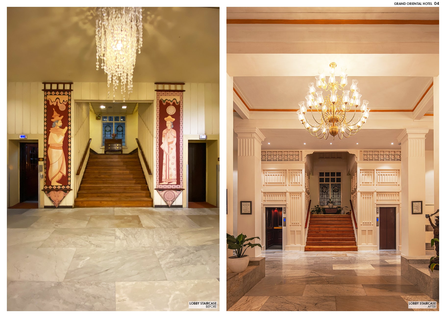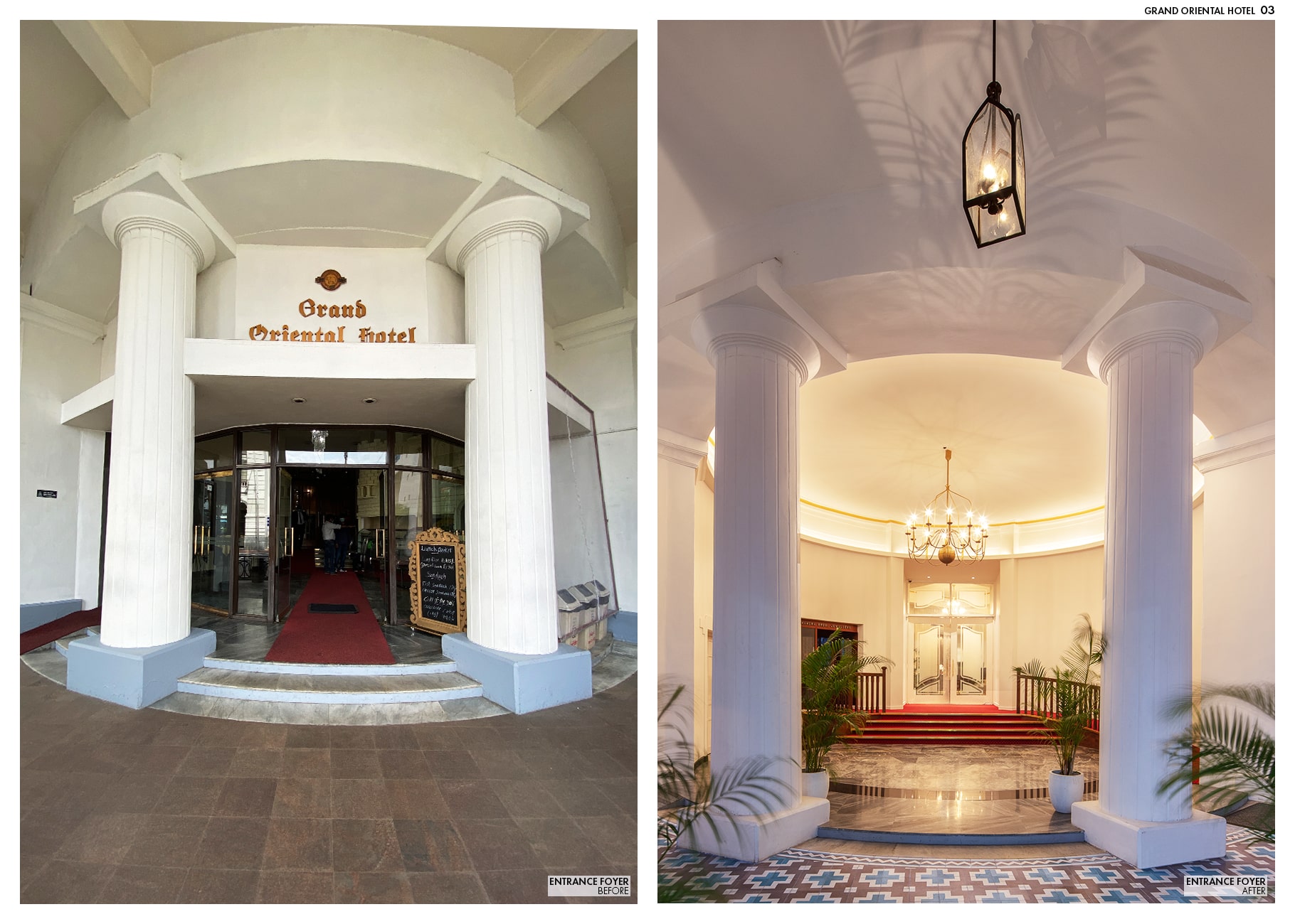 Shortlisted NomineeThe Restoration and Refurbishment of the public areas of the Grand Oriental Hotel was initiated by The State Ministry of Urban Development, Waste Disposal and Community Cleanliness and the Urban Development Authority. This project is part of the development of the Heritage Square under the ‘Vistas of Prosperity and Splendor’ Manifesto of President Gotabaya Rajapaksa The Scope of the work Included the following: 1. The Restoration and Lighting design of the Façade 2. The Rehabilitation and Restoration of the Colonnaded Arcade (Public walkway) 3. The Restoration of the Entrance Foyer 4. The Restoration and Refurbishment of the Lobby and the Taprobane Bar & Lounge 5. The Restoration of the Rainbow Ballroom 6. The Soft Refurbishment of the Lotus Ballroom 7. The Restoration and Refurbishment of the Harbor Room Restaurant and Bar 8. The Refurbishment of the Tap Bar