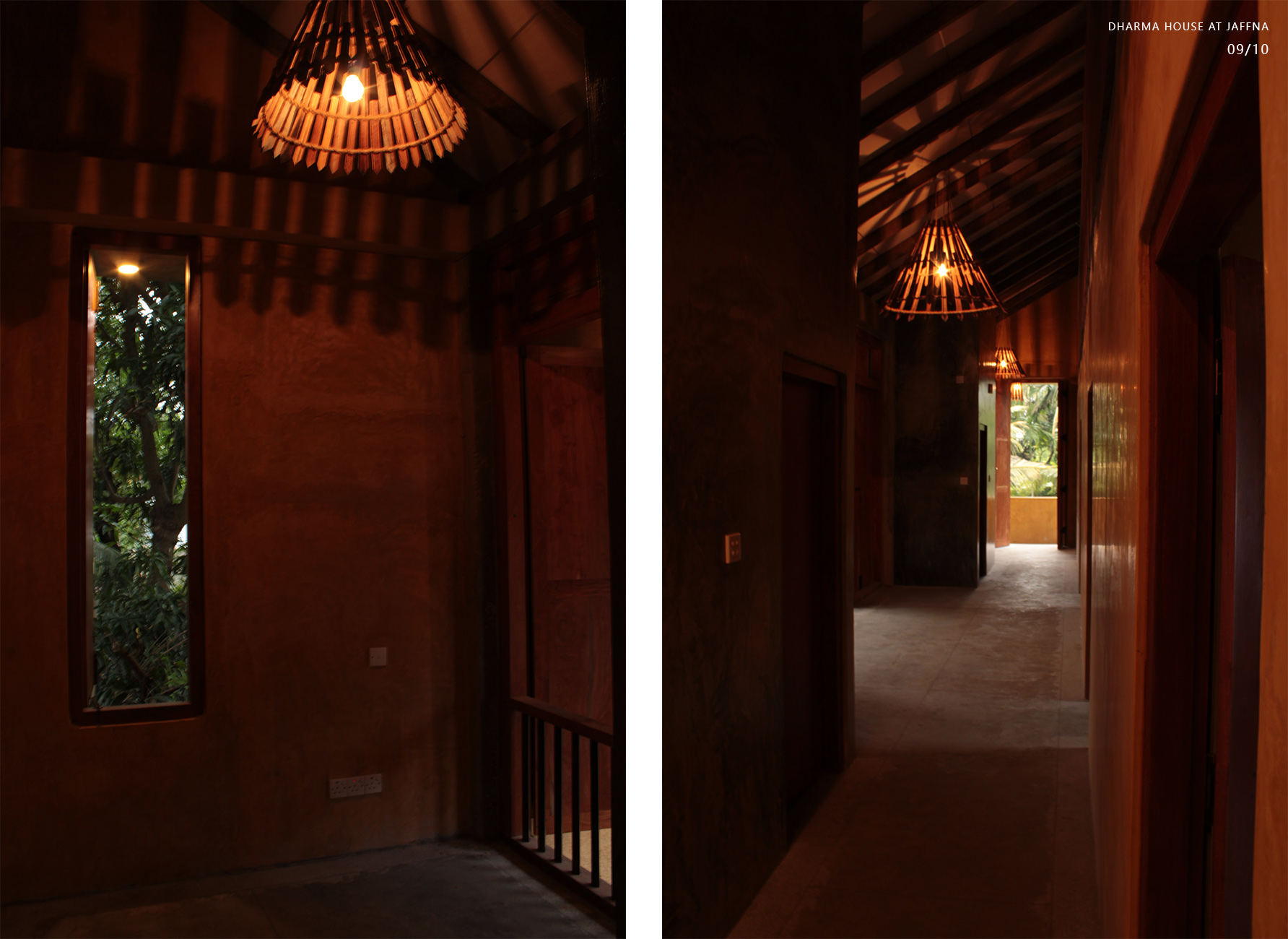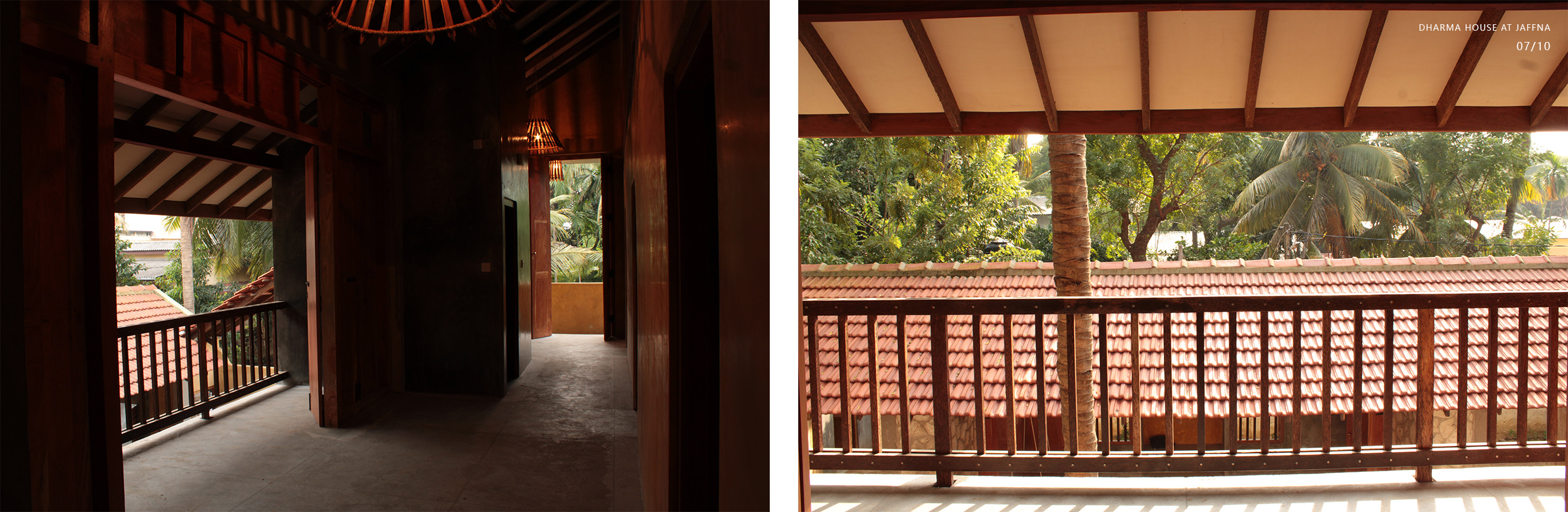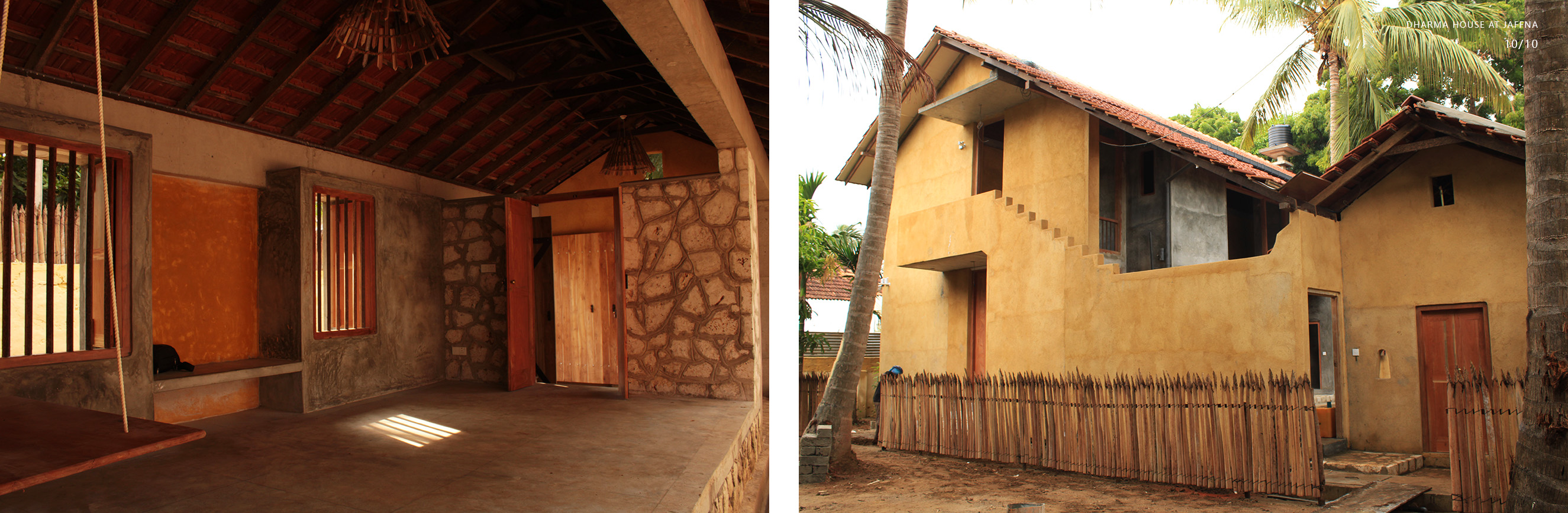 Private Residencies - Merit AwardClient desired a native house after 30 years’ stay in abroad, which could heal bitter memory of the destroyed house in civil war. The land transferred by generations, Out of 1608m2, 393m2 decided for dwelling, rest for coconut plantation. The location is dense in a kilometre distance to the heart of Jaffna. The native community displaced to different parts of the world, new community is emerging. Two blocks are in different scale interconnected by the staircase with flying roof expressing a family. The transition courtyard grasps nutritious sun light in the morning while admitting natural light, air movements and transforming the internal spaces. Two blocks consist multifunctional and private. The scale and details of multifunction hall validates social justice with the immediate neighbouring community, whose income depends on daily wages and optimizes private life for all dwellers without discrimination. The multifunctional hall facilitates social interactions space for family, neighbours and domestic service providers via all creatures. This revives the life lived in a simple, slower phase and sharing socio economic and political dialogs. The space engraves happy and sad moments throughout life transformation, the courtyard extends the moments when needed. The private block consists of bedrooms, kitchen, sitting, dining and toilets. Openings are detailed to justify the law of sight for individual limit and unlimit, while admitting light and ventilation. Most spaces are arranged to focus the courtyard magnetise interactions. The functional spaces are arranged to start and end the day with the sunrise and sun set.