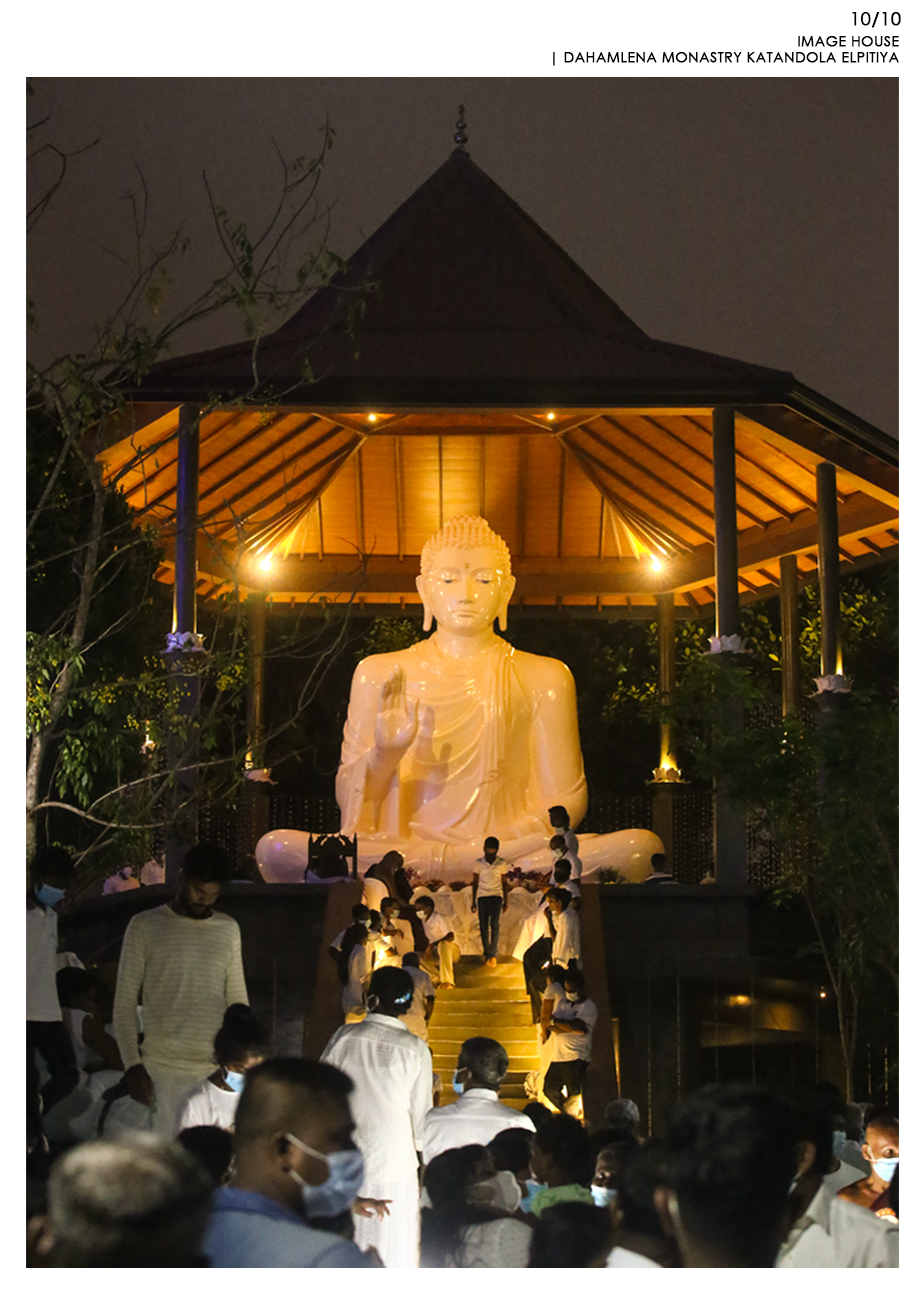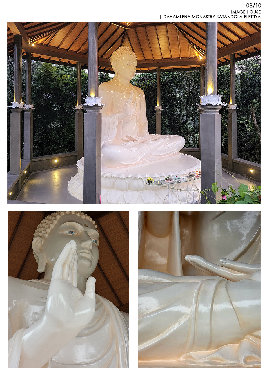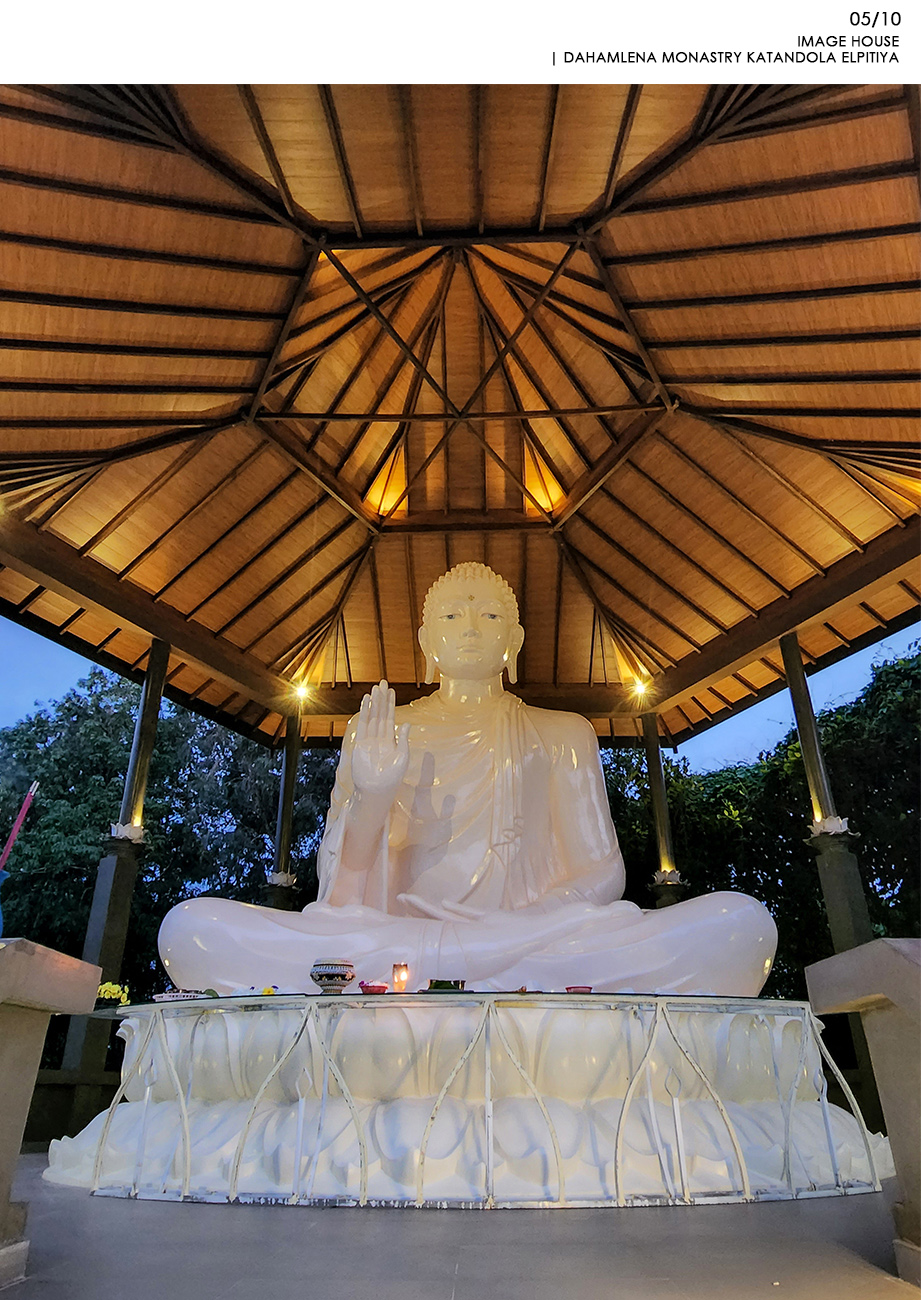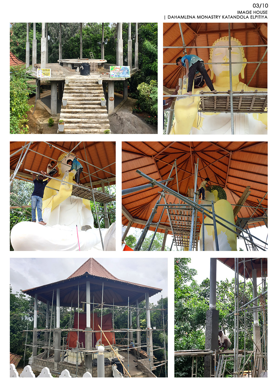 Religious and Cultural - Shortlisted NomineeKatandola village located in Elpitiya is lived by an estate community whose livelihood is flourished on the crops of tea, rubber and coconut. Aranya is the highlight of the village and, for years there was a need for an image house. The temple was built with the immense contributions of the villages for materials and labour and they held the pride of building and owning it and the raised platform refers to their respect towards the Buddhist Philosophy. This has created the community more united over good cause of action and the honest interest of the village and becoming better citizens. The entrance to the main temple is in alignment in the same axis with the entrance to the image house. The architect also wanted to raise the platform where the Buddha statue sits for keeping it the heist hierarchical point to worship. The form of hexagon platform and roof was selected to create the balance from all sided externally and internally. Because of the hexagon plan form, the platform and the walking path around the Buddha statue could accommodated with ease allowing enough space for circulation. The roof on the top highlight the statue charmingly by having a geometrically balance with traditional details of rafters and placing the statue pinnacle aligning the highest peak of the roof. The Buddha statue is casted with a personally know artist to the architect carefully to bring the best expressions of stature to make the pilgrims to get inspired with its “arshirwada mudra”.