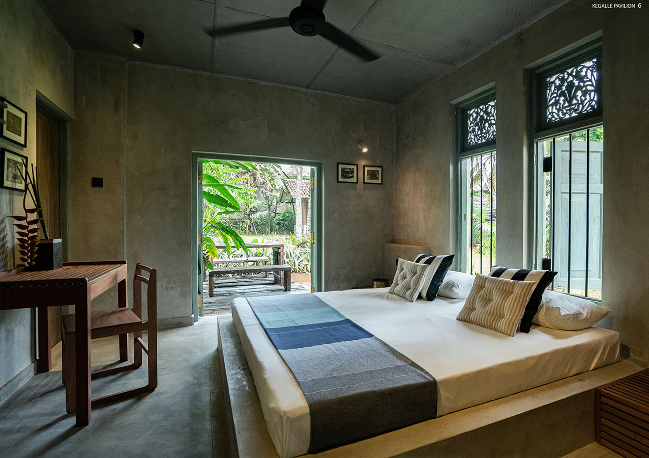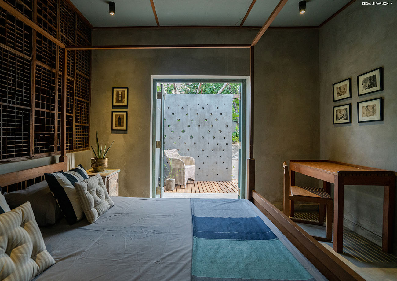 Renovations - Honorable MentionKegalle pavilion is old residential house converted to a tropical hospitality villa using existing old structures and reutilized abandoned garden spaces for beautiful landscape intervention. The social and cultural impacts throughout the past years have changed the functional efficacy and spatial hierarchy. The project Kegalle pavilion entrusted the reinventing the essence of the old glory of the building and converting it into a luxury boutique villa. Overall building approach; identified as a 'sustainable renovation' that leads to more energy efficiency and gaining more sustainable benefits to the project. The entrance from the main road is emphasized by an aquamarine colour reclaimed, two antique entry doors, and two frangipani trees giving the entry feeling to the villa. The entrance is enhanced by the rustic stone paving with reclaimed pivoted wood panels giving a see-through feeling to the entrance veranda. The living and dining spaces act as the spine of the villa connecting to the greenery outside. The grey interior brings in a calmer and tranquil vibe, while natural timber colours enhance the richness of the space. Bedrooms are designed to create privacy and are well-connected to both sides of the landscape. Front and rear verandas are a dominant feature in this extraverted approach for relaxation while experiencing the tropical landscape. The large front garden gives more beating space to the old building, whereas the open pavilion highlights the climax of the spatial progression. All interior details were carefully created using recycled elements and materials to recreate the tropical retreat.