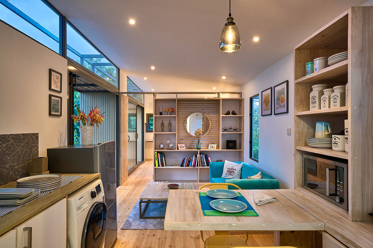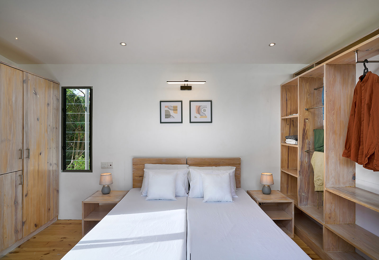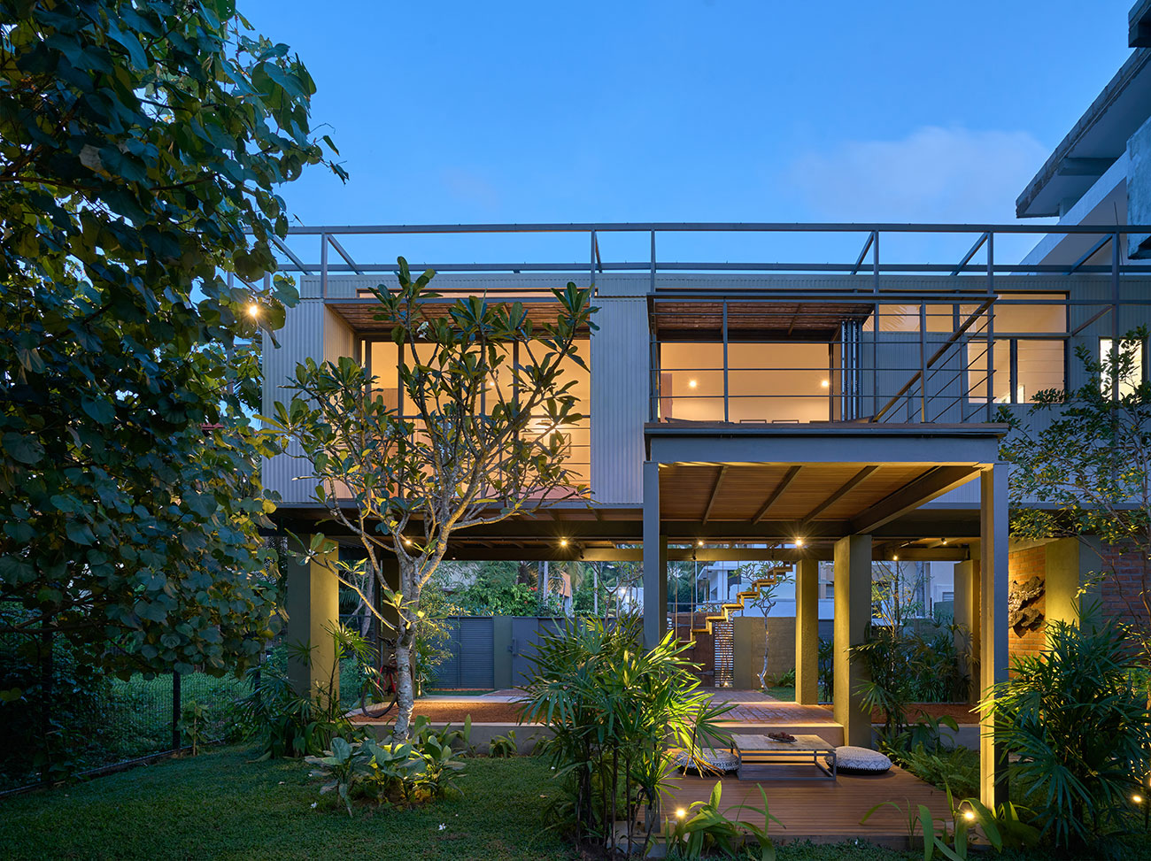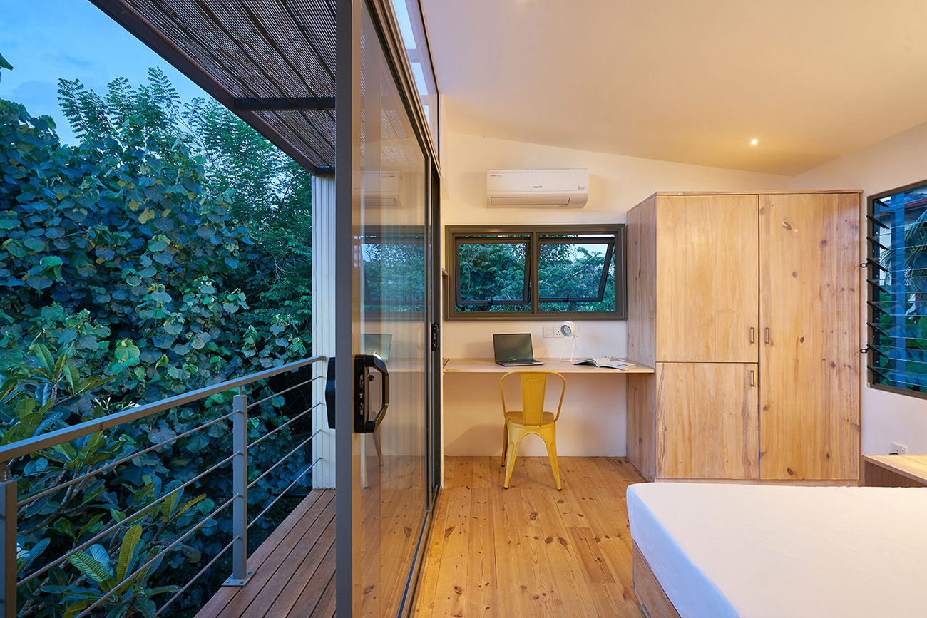 Private Residencies - Shortlisted NomineeThe site, located in the suburbs of Colombo, faces a marshy land, providing a unique backdrop for a residence tailored to a software engineer client who now works from home post-pandemic. With a focus on creating a peaceful live-work environment, the project embraces the "living big in a small house" ethos, prioritizing intentional simplicity and essential needs to minimize costs while fostering a homely ambiance. Sustainable architecture principles are integral to the project's design. The structure seamlessly blends a concrete substructure with a predominantly steel superstructure using innovative elements like a grid pattern of box bars and corrugated Zn-Al sheets for cost-effective strength and aesthetics. Exterior and interior coverings, utilizing roofing sheets and cement plaster boards, incorporate thermal insulation to mitigate heat gain. Cross ventilation, a narrow building breadth, and strategic orientation further enhance energy efficiency and interior cooling. The project's sustainability extends to efficient space utilization, a reduced environmental footprint, and a harmonious integration with nature through a larger garden. Socially responsible architecture is evident in its affordability, adaptability, and flexibility, making housing accessible across socio-economic backgrounds. By offering a holistic vision for sustainable living, this project serves as an enlightening solution to the current housing challenges in Sri Lanka, presenting a harmonious synthesis of intentional simplicity, cost-effectiveness, and environmental responsibility.