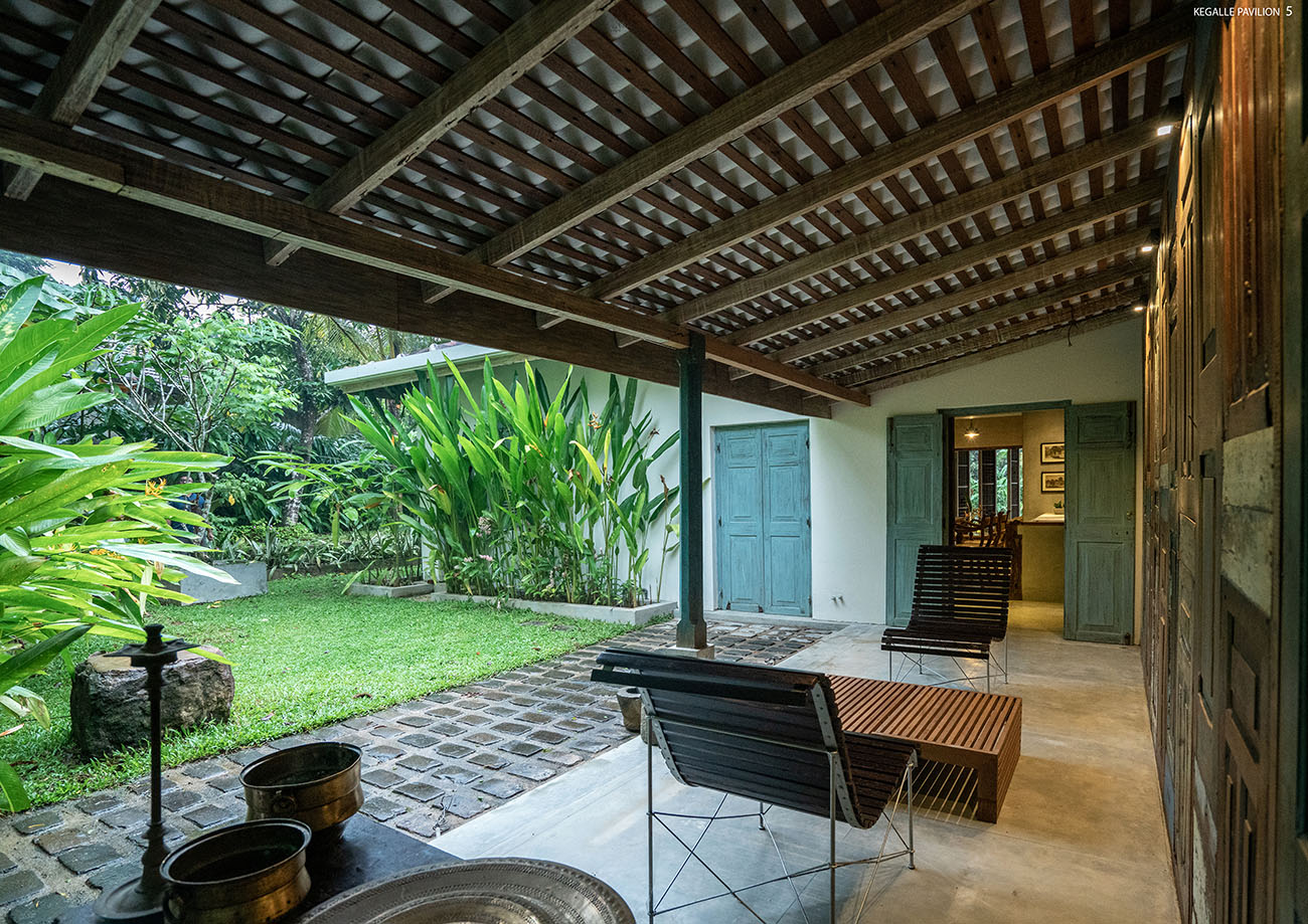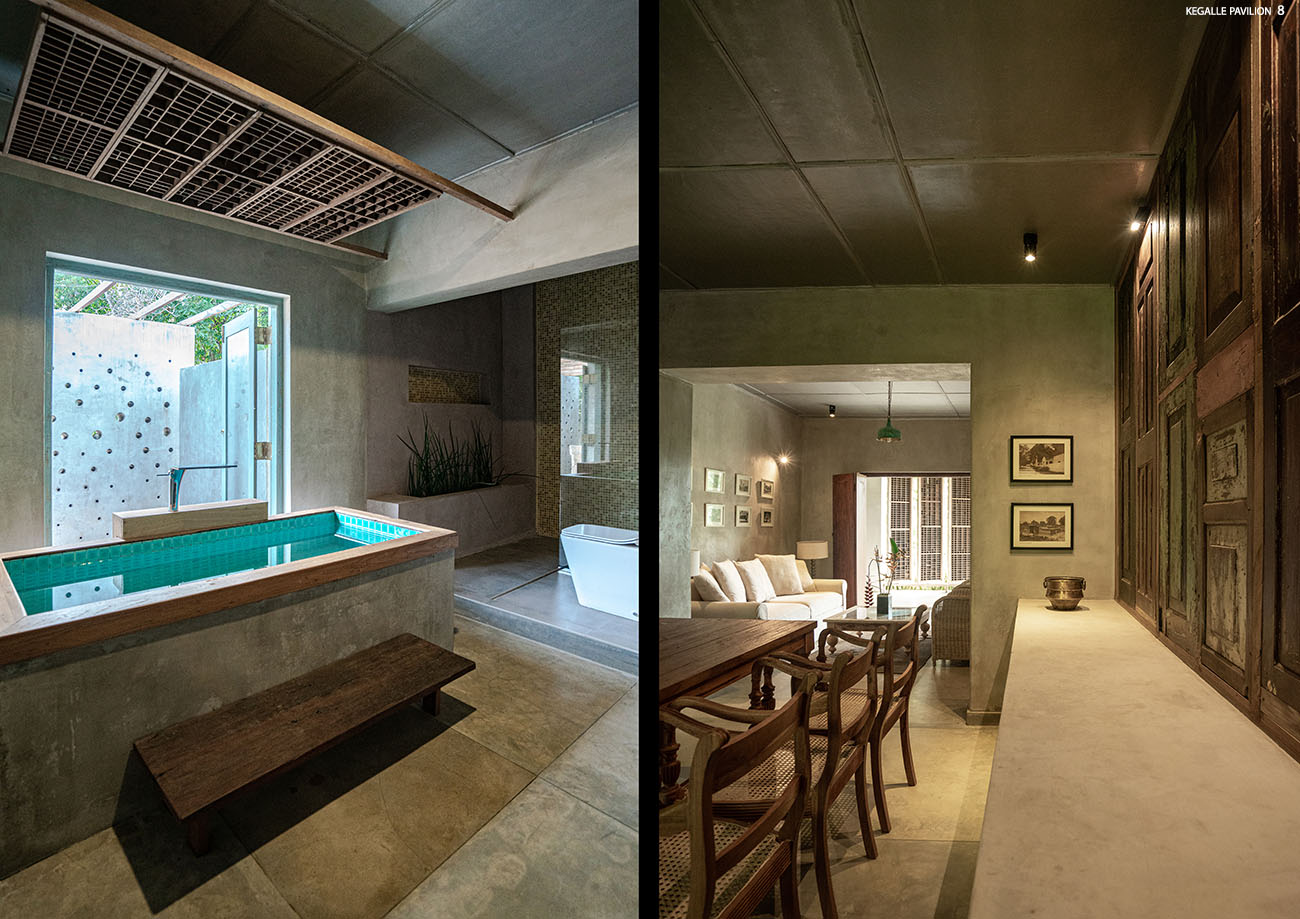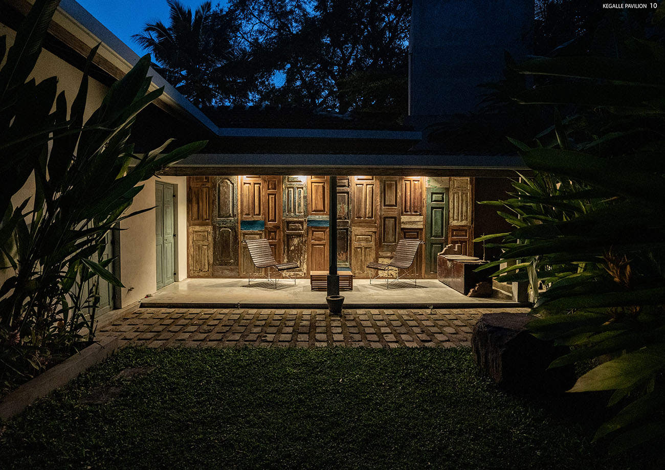Shortlisted NomineeKegalle pavilion is old residential house converted to a tropical hospitality villa using existing old structures and reutilized abandoned garden spaces for beautiful landscape intervention. The social and cultural impacts throughout the past years have changed the functional efficacy and spatial hierarchy. The project Kegalle pavilion entrusted the reinventing the essence of the old glory of the building and converting it into a luxury boutique villa. Overall building approach; identified as a 'sustainable renovation' that leads to more energy efficiency and gaining more sustainable benefits to the project. The entrance from the main road is emphasized by an aquamarine colour reclaimed, two antique entry doors, and two frangipani trees giving the entry feeling to the villa. The entrance is enhanced by the rustic stone paving with reclaimed pivoted wood panels giving a see-through feeling to the entrance veranda. The living and dining spaces act as the spine of the villa connecting to the greenery outside. The grey interior brings in a calmer and tranquil vibe, while natural timber colours enhance the richness of the space. Bedrooms are designed to create privacy and are well-connected to both sides of the landscape. Front and rear verandas are a dominant feature in this extraverted approach for relaxation while experiencing the tropical landscape. The large front garden gives more beating space to the old building, whereas the open pavilion highlights the climax of the spatial progression. All interior details were carefully created using recycled elements and materials to recreate the tropical retreat.