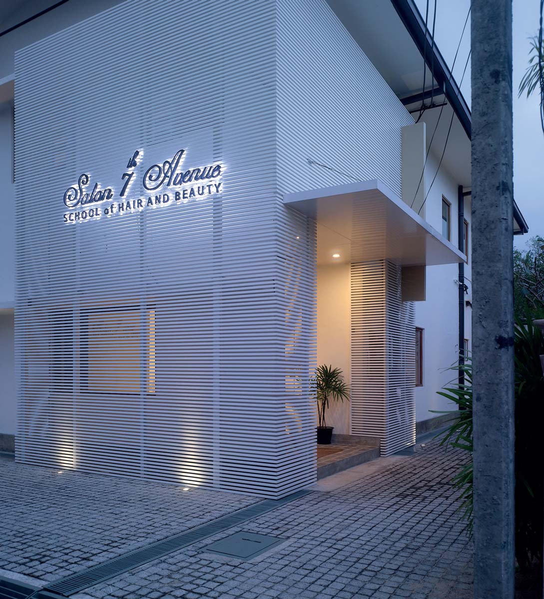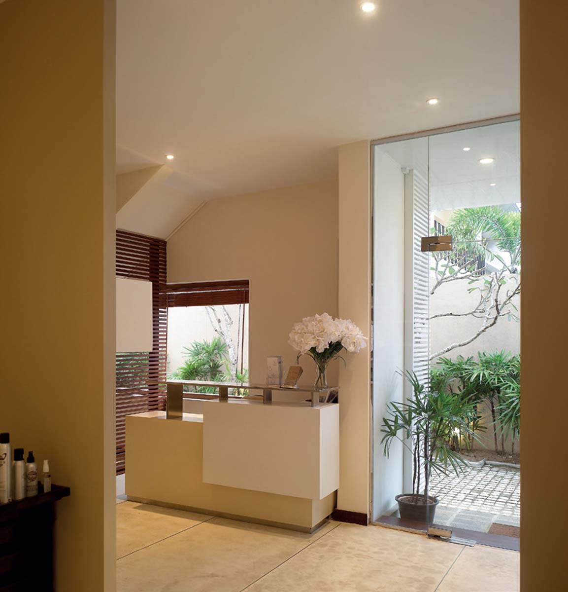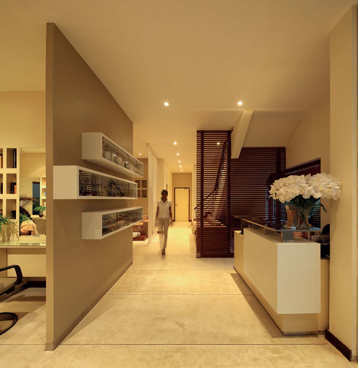 The interior offers a calm ambience, ideal for the multitude of treatments taking place within. The configuration is set for a smooth transition between spaces, according to respective degrees of privacy afforded by them. The experience is enhanced by careful manipulation of day/artificial lighting, giving the desired luminance levels. The fenestration framing greenery outside is also noteworthy. The muted earthy hues within was derived by the ‘white Iris flower’; the salon’s theme.purchasing experience.