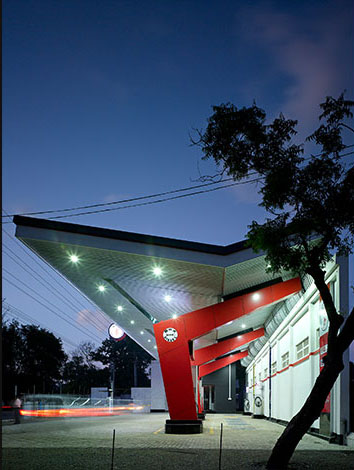 The scheme combines commercial and residential functions and places them under one architectural umbrella. The beauty of the project lies mainly in the simplicity of the planning. The ground level functions as a service station while the above floors facilitate the requirements of the motel. The visitors jhumk8in the above floors have access to the exterior via balconies to enjoy the picturesque views of the suburban landscape. Aesthetically it is charming and architecturally it is a well-designed scheme. Unlike other projects of this nature this design is humble to its natural context.