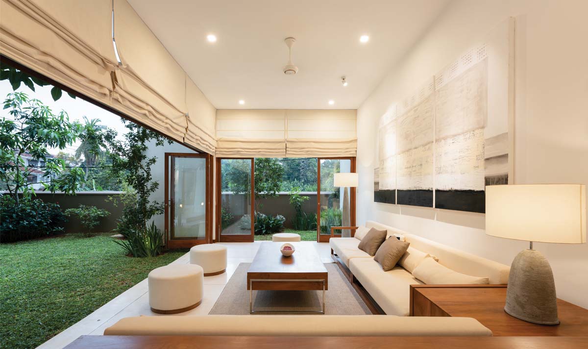 Naturally elevated ground level from the road enhanced the achievement of a maximum level of privacy from outside while retaining a full view of marshy land from the garden as an extending of the view.