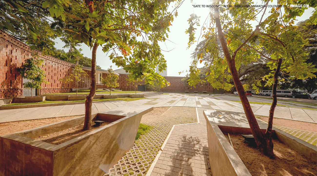 Excellence Award'Gate to Wisdom' is the Stage 01 of the Isipathana College 5 year Student Facility Enhancement & Image Building project. The Gate to wisdom is also the main entrance to the college which creates a subtle transition from social space to learning space for school users. The gate house and the landscaped forecourt offers a perceptible built cape experience for over 3000-4000 students, whilst meeting the security and safety requirements.